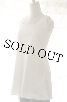 首元とフロントオープンに愛らしい透かしスカラップのステキなボビンレースがあしらわれています。