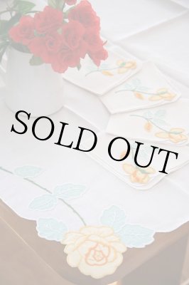 カナダ アンティークリネンテーブルクロス手刺繍Sサイズ [AB1182]