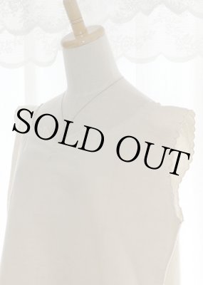清潔感のあるホワイトリネンのテーブルクロスです。各コーナーにはエレガントなカットワークの野バラ刺繍がハンドメイドで施されています。ボタンホールステッチ、フレンチノットステッチ、シュテムステッチで丁寧に仕上げられています。縁も、立体的でボリュームが出るようパット入りのハンドメイドスカラップで、美しく施されています。