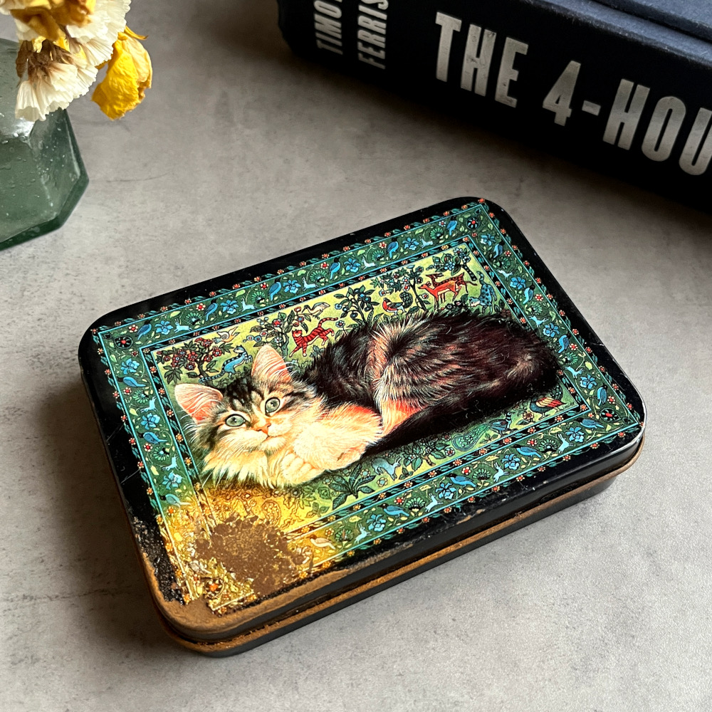 - > 英国 1988年 イギリス ヴィンテージ 缶 HUNKYDORY DESIGNS 猫 Lesley Anne Ivory