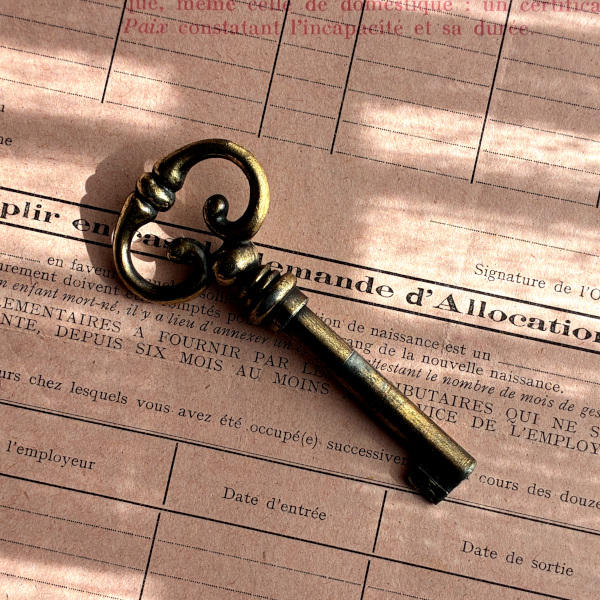 まるで物語の扉を開くような、美しい装飾が施されたフランスアンティークの鍵。