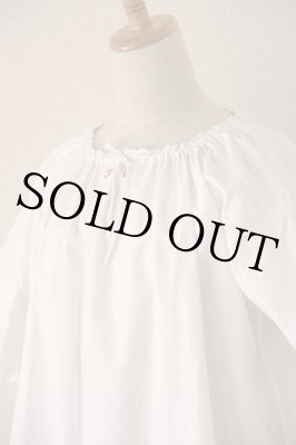 胸元から後ろにかけて、スカラップレースがあり、ギャザーが寄せてあるのでふんわりやさしい雰囲気です。
