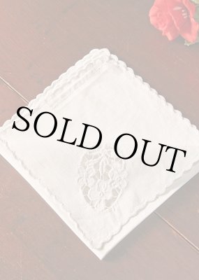 〈ヨーロッパ〉フレンチプードル手刺繍のアンティークハンカチーフ [AM1483]